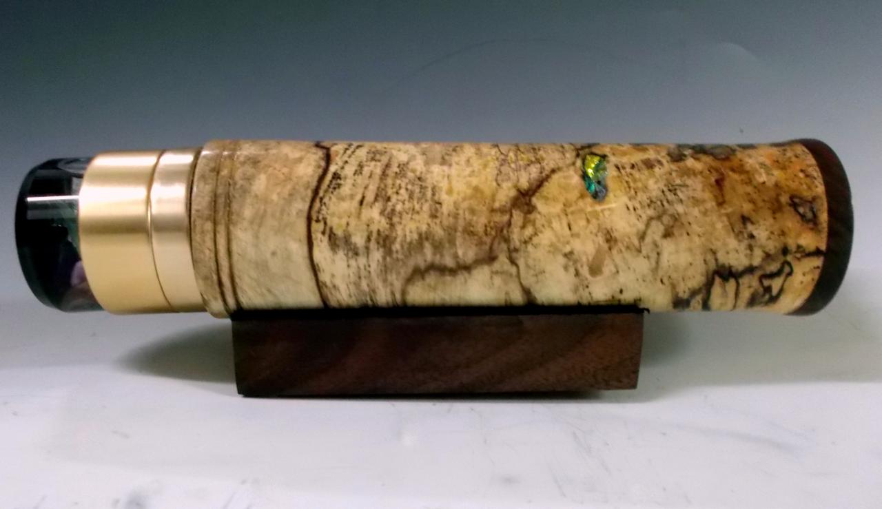 The eyepieces are usually made with a contrasting wood to the barrel. For instance, for the Spalted Maple barrel, a walnut eyepiece is used. The combinations for the woods can be special ordered.