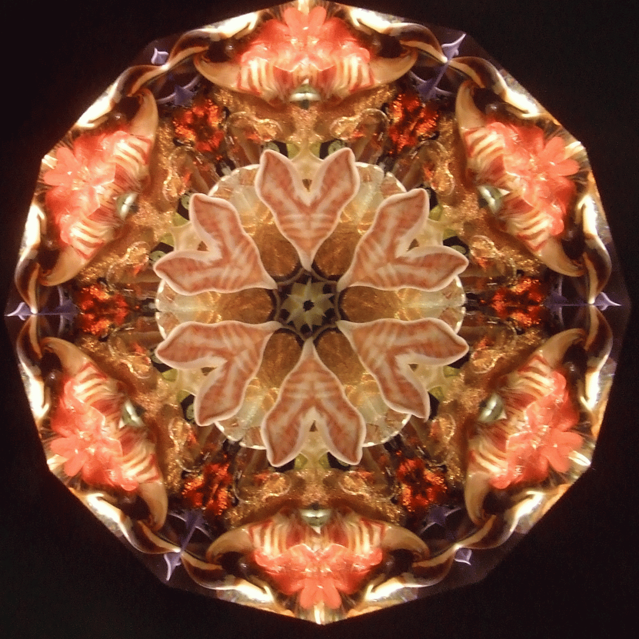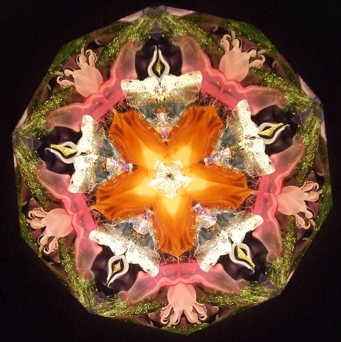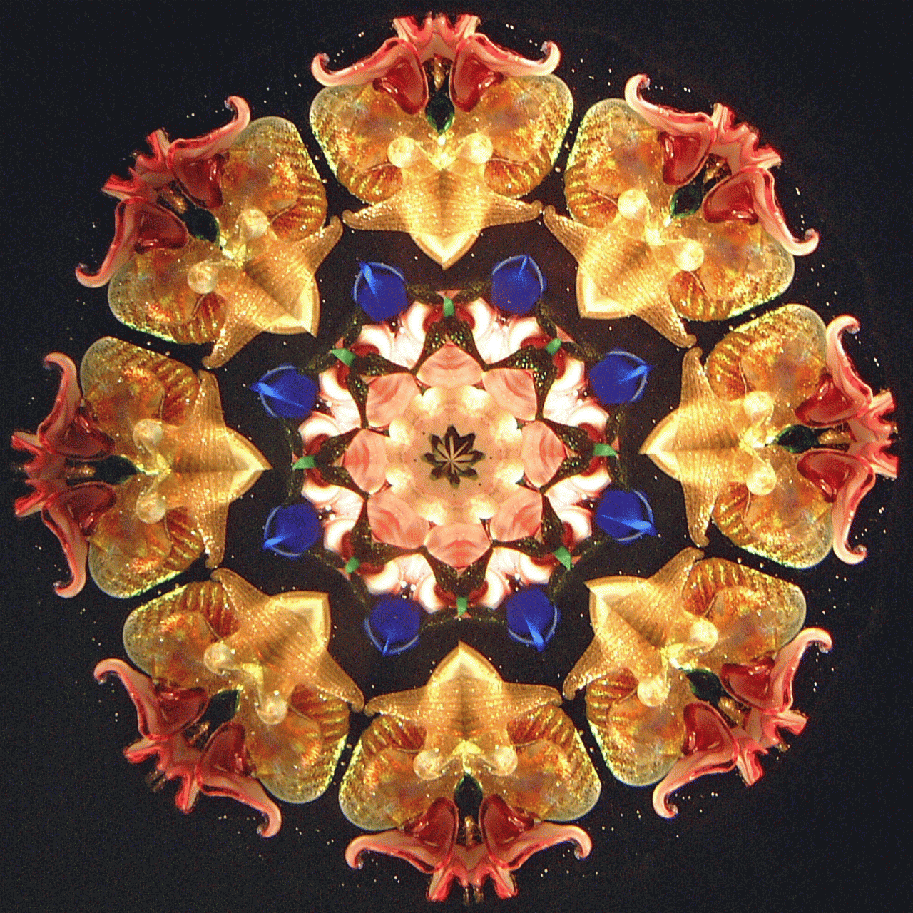 Peggy's flame sculpted pieces found in the oil filled object cells create magic for the viewer. No two object cells are alike, and as the pieces float in the cell, no two views are ever alike. The variety of mirror systems available also changes the look. Below is a small sample of images. You can click on the images for larger views. You can contact us and talk to Peggy about creating just the right object cell for your preferences!