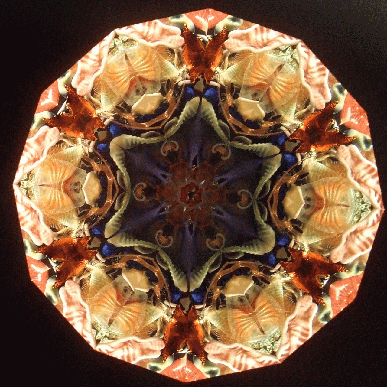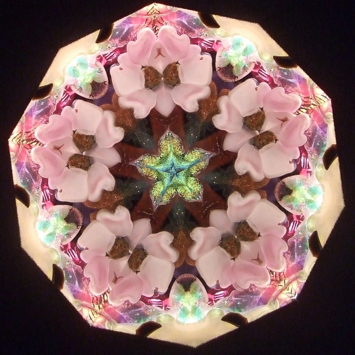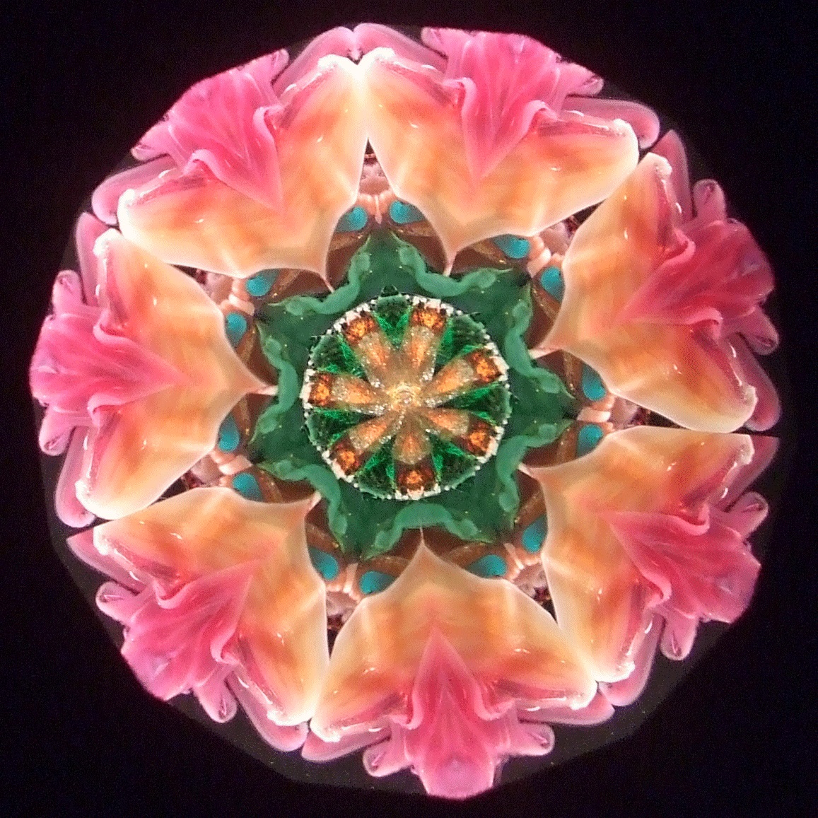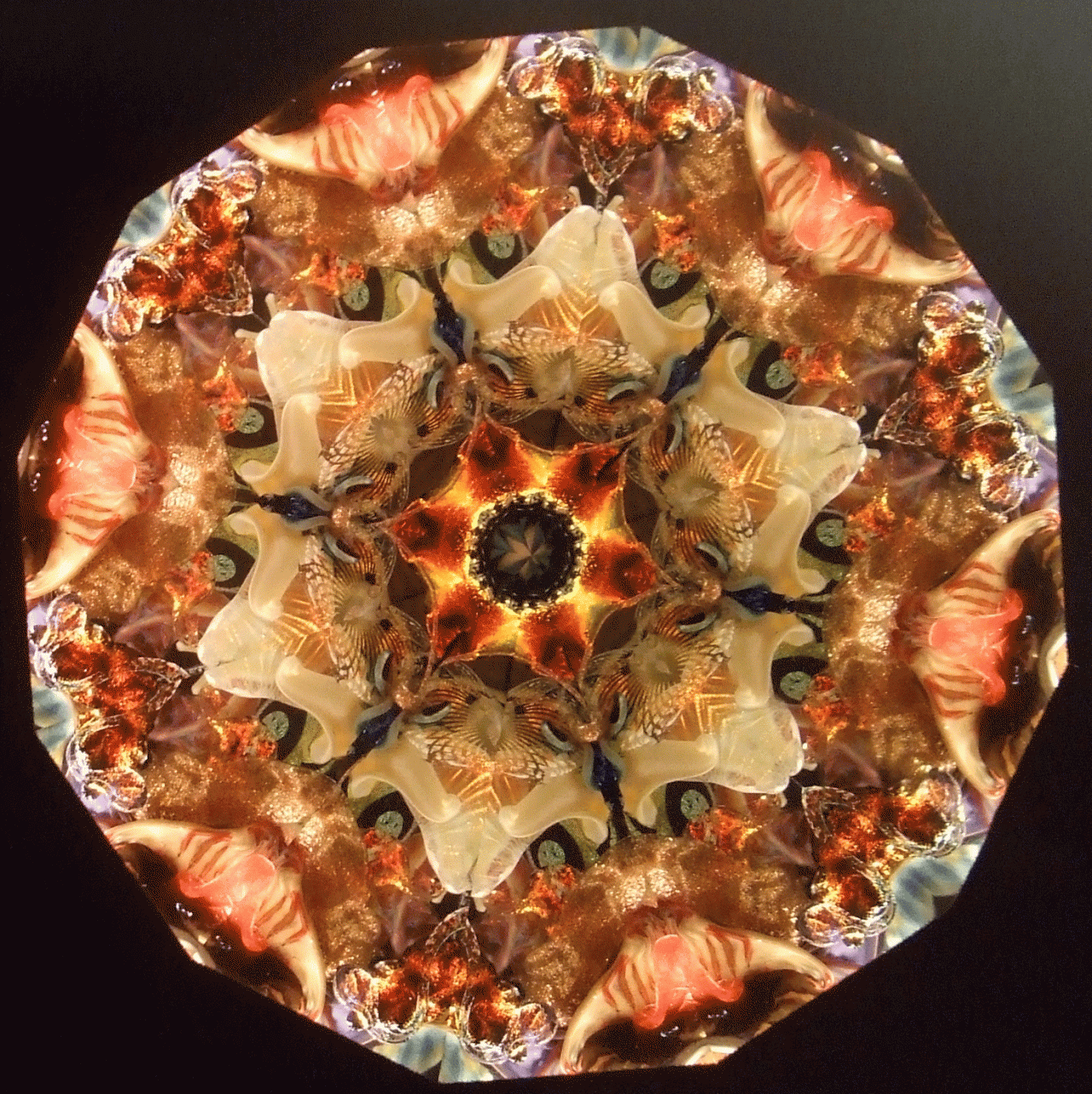 Peggy's flame sculpted pieces found in the oil filled object cells create magic for the viewer. No two object cells are alike, and as the pieces float in the cell, no two views are ever alike. The variety of mirror systems available also changes the look. Below is a small sample of images. You can click on the images for larger views. You can contact us and talk to Peggy about creating just the right object cell for your preferences!