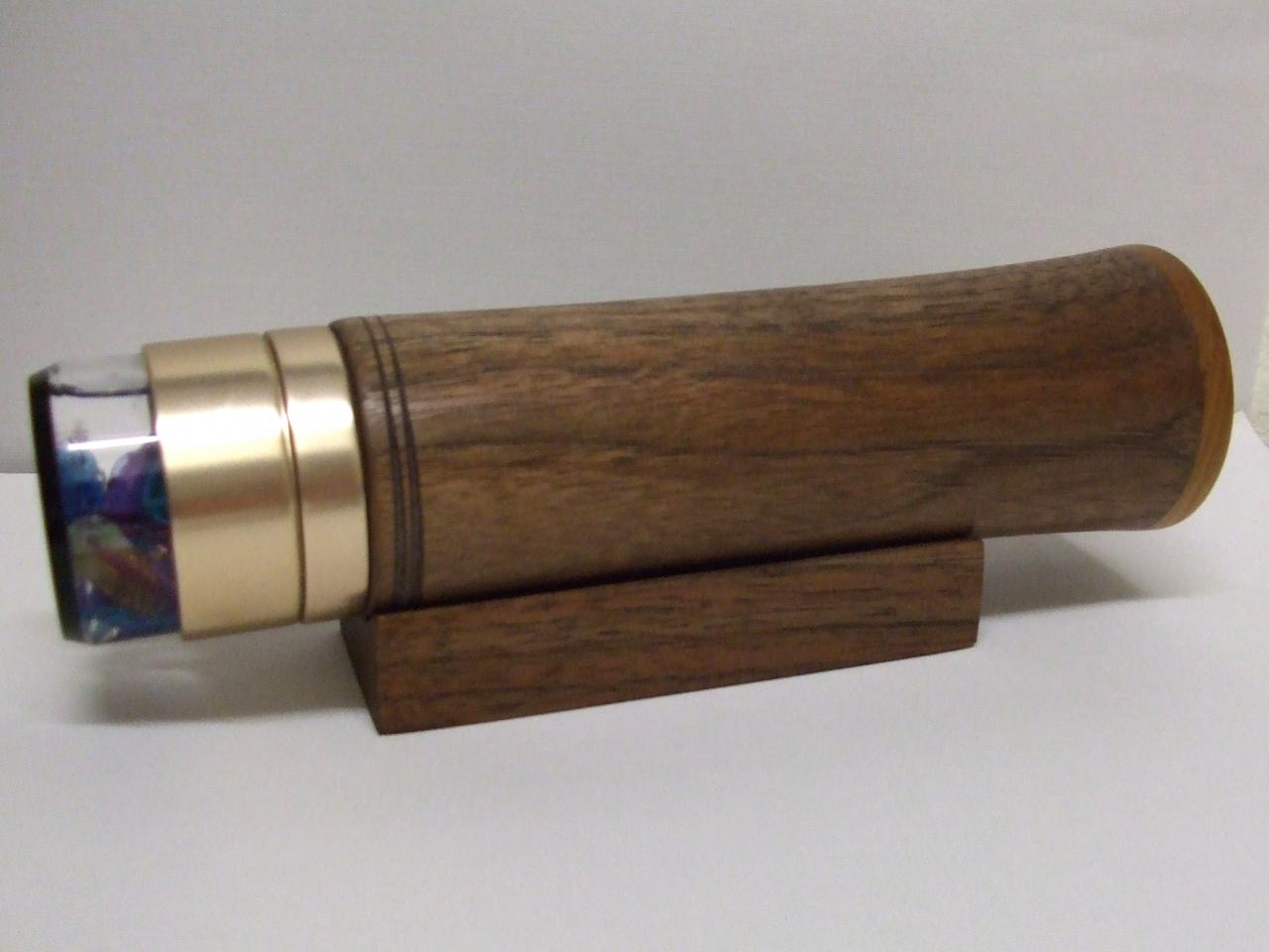 The eyepieces are usually made with a contrasting wood to the barrel. For instance, for the Spalted Maple barrel, a walnut eyepiece is used. The combinations for the woods can be special ordered.