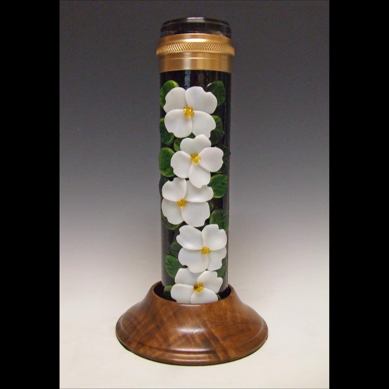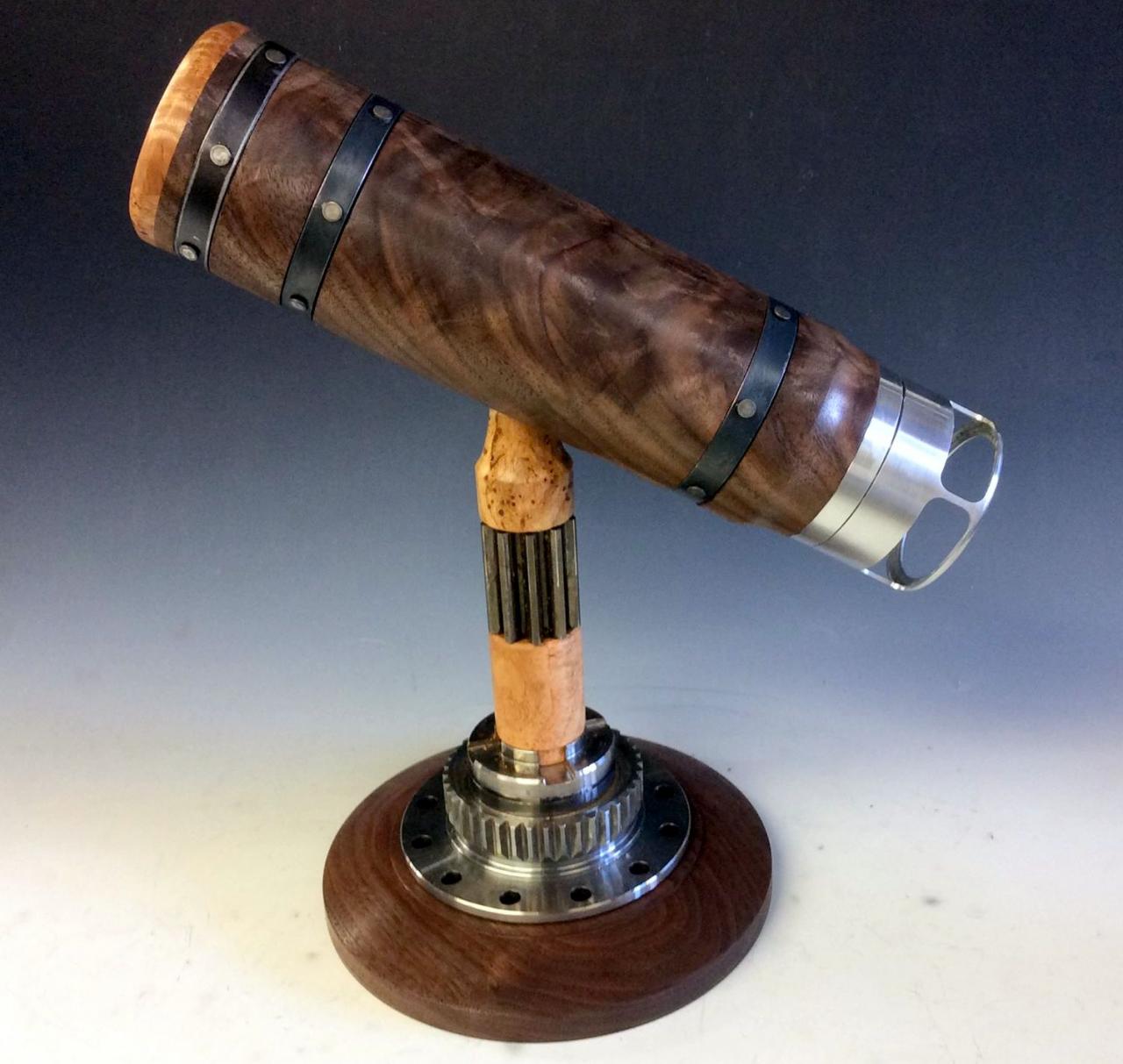 We know that kaleidoscopes are very personal and need to be seen to to connect with. This year, we will be creating the scopes to YOUR personal preferences. We are happy to discuss all of those details with you when you contact us. *CLICK on the thumbnails to see a bigger picture and some details along with the price. NOTE: There are some wood barrels at the bottom of the page that are turned and ready for customization. All handheld scopes come with a walnut stand to lie on and all flower scopes come with a turned round walnut stand.